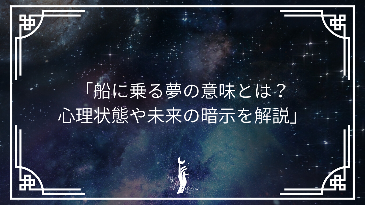 - 船に乗る夢が見られる心理的な背景や心の状態について解説。