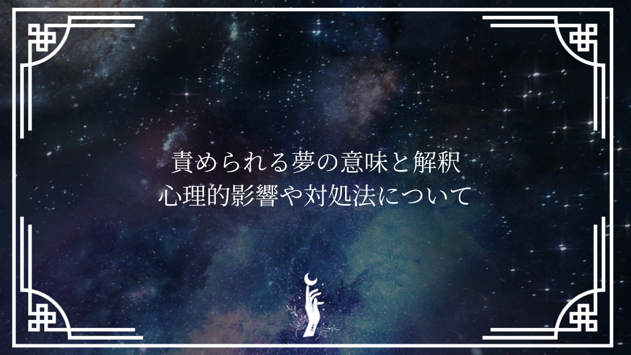 責められる夢の意味や心理的な影響について知りたいですか?この記事では、夢占いの視点から、責められる夢が持つ一般的な解釈について説明します。夢のメッセージを理解し、心の安定を取り戻しましょう。