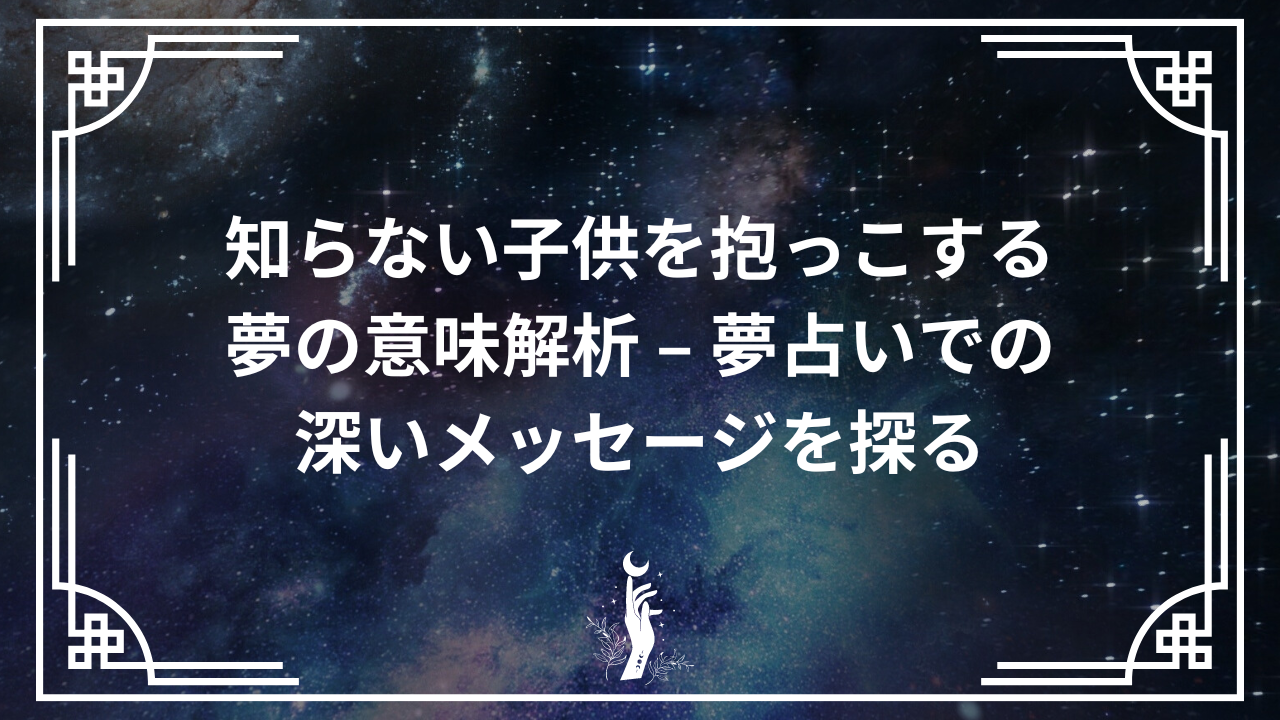 知らない子供を抱っこする夢は、夢占いにおいて多くの心理的意味を持つとされています。この夢は保護欲求、無償の愛、責任感の表現など、夢見る人の潜在意識にある感情や願望の反映と見ることができます。また、新たな始まりや純粋な側面を受け入れることへのオープンネスを象徴する場合もあります。この記事では、そのような夢の背景にある心理的なメカニズムと、それが現実世界でどのように影響を与える可能性があるかについသいて掘り下げています。