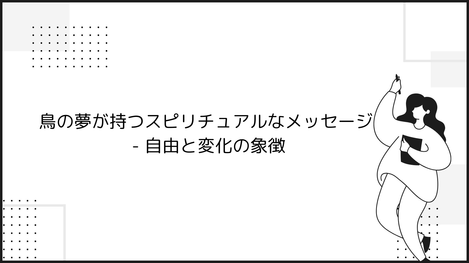 「その通り。鳥の夢は、自分自身の可能性を信じ、自由に羽ばたく勇気を持つことの大切さを教えてくれるんだ。この記事を読むことで、鳥の夢が持つスピリチュアルなメッセージを理解し、それを自己成長のためにどう活かすかのヒントを得られるはずだよ。」