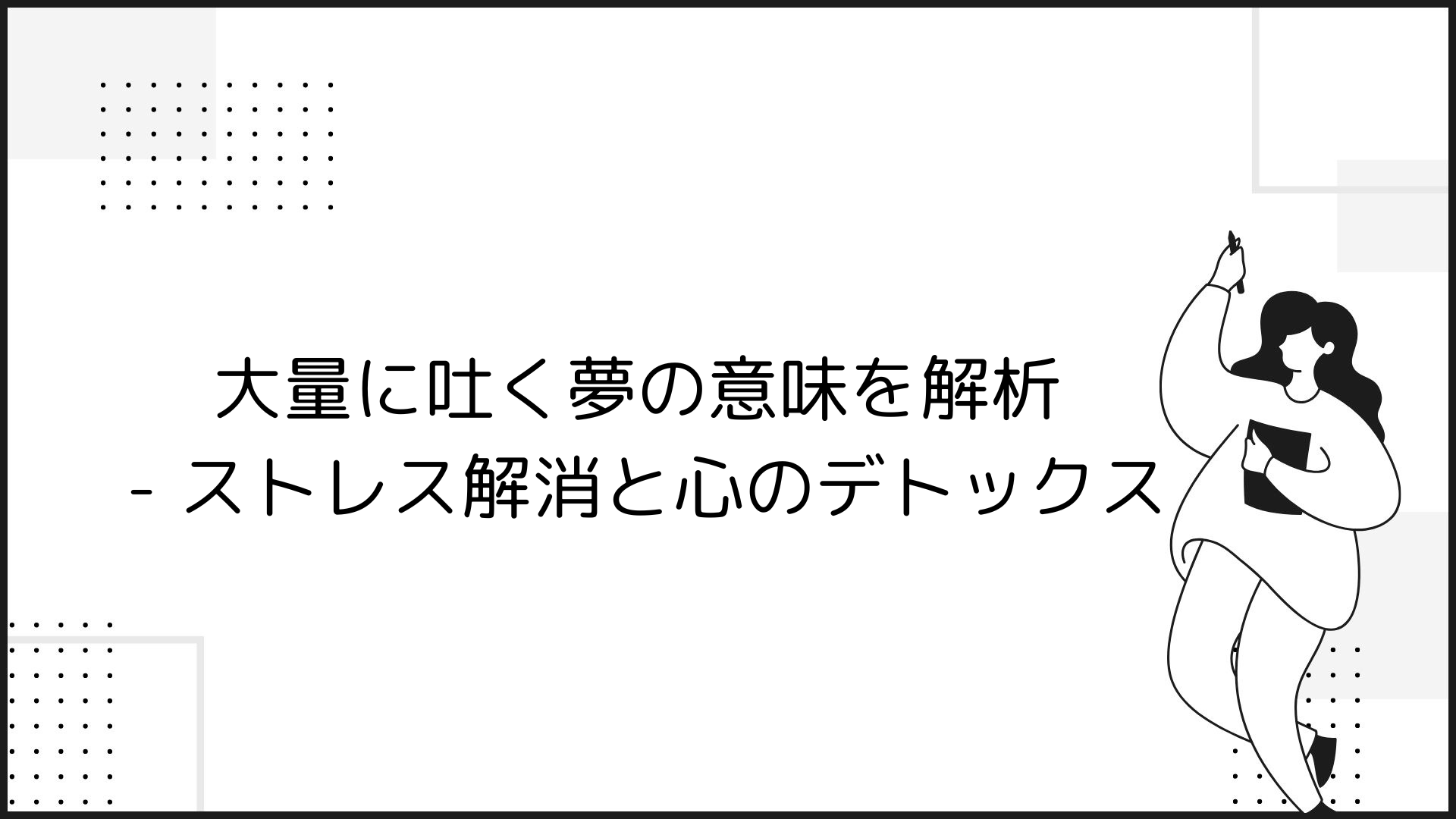 「夢はね、私たちの無意識が現実の問題や感情を象徴的に表現する方法の一つなの。特に吐く行為は、日々の生活で感じるストレスや抱えている問題を示すシンボルとして現れることが多いわ。」
