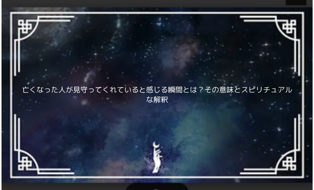 亡くなった人が見守ってくれているという感覚は、スピリチュアルな視点から見ると、私たちが大切な人とのつながりを感じるための大切なメッセージとされています。この感覚は、私たちの心に癒しをもたらし、日々の生活で安心感を得るための支えとなるのです。