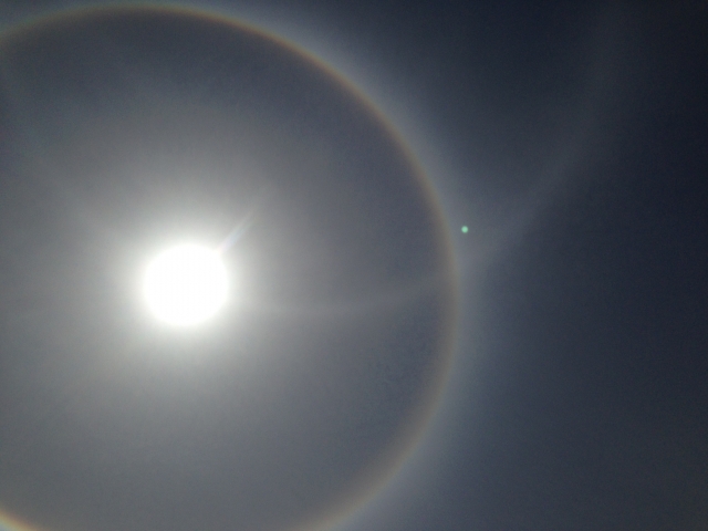 • 氷晶が六角形で、特定の角度で太陽の光が差し込むこと