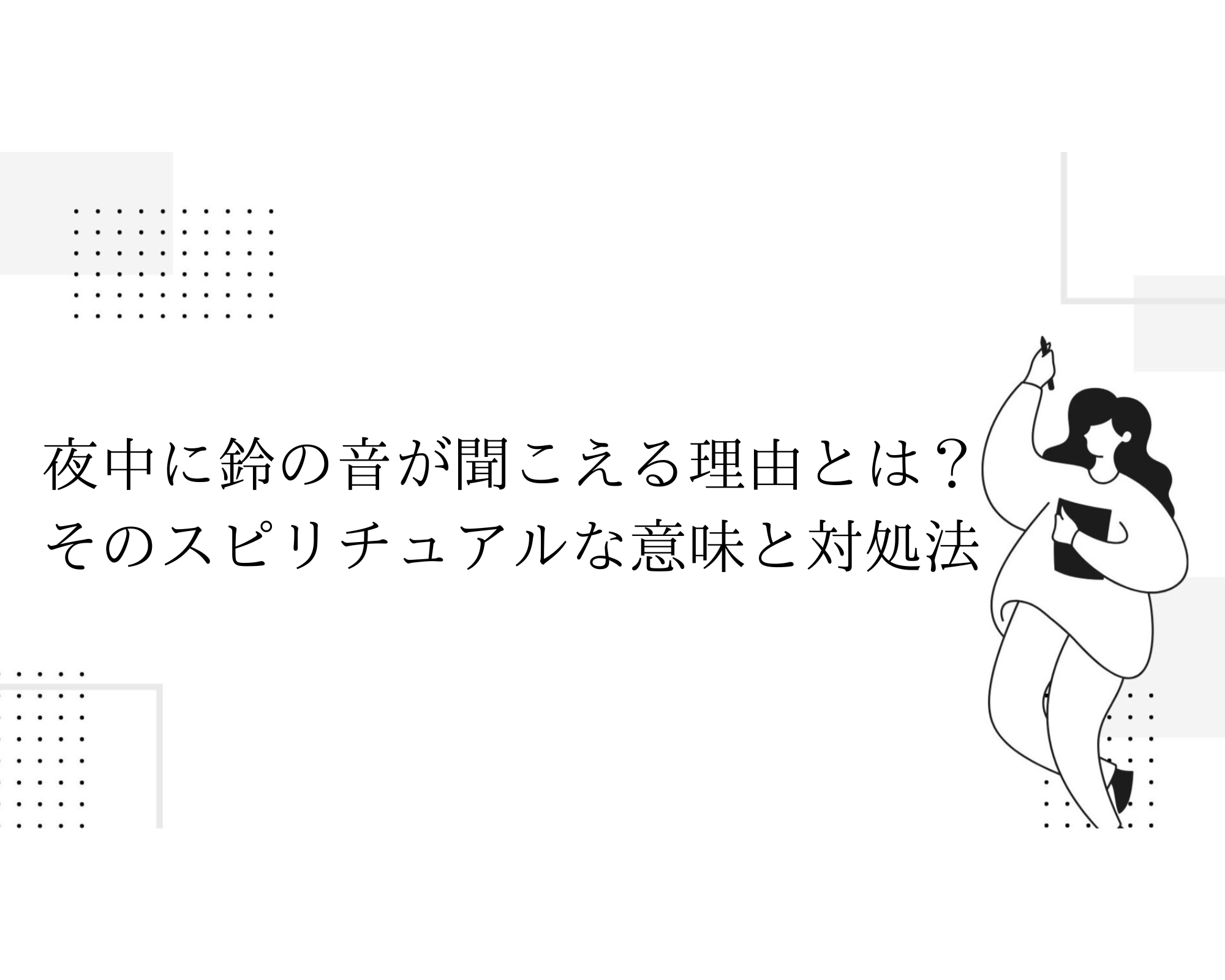 夜中に鈴の音が聞こえたときの対処法や、心を落ち着けるための実践的なアドバイスを提供。スピリチュアルなメッセージを受け取る方法についても触れる。