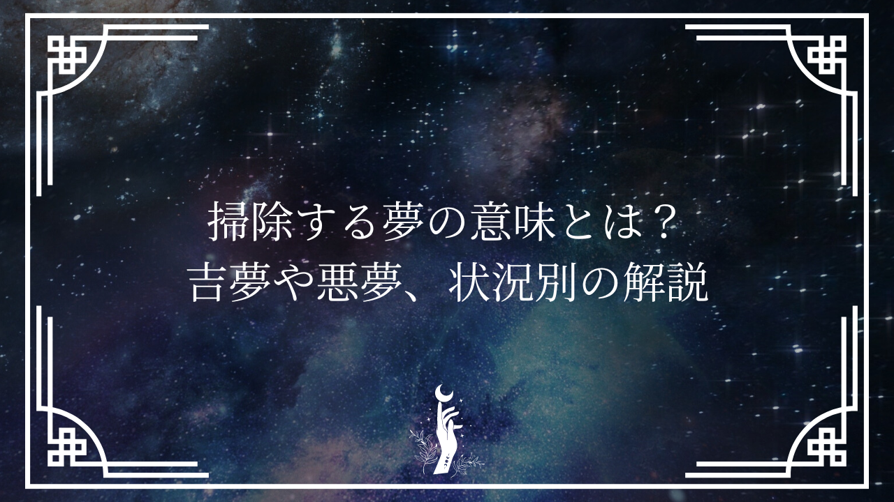 - 「掃除する夢ってよく見るけど、どんな意味があるのかな?」と友人が尋ねてきました。「新しい始まりや再生を示すことが多いんだよ」と私は答えました。実際、夢の中で掃除をすることは、心や環境をリセットして、ポジティブな変化を迎える準備ができていることを表しているんです。「じゃあ、心の浄化ってどういうこと?」とさらに質問されました。「例えば、長い間抱えていたストレスやネガティブな感情を整理して、心をクリアにすることを意味するんだよ。掃除する夢を見たときは、心の中のモヤモヤを解消する絶好のチャンスだと捉えてみて」と私は説明しました。心の中を整理することで、日常生活もスムーズになりやすくなるんです。