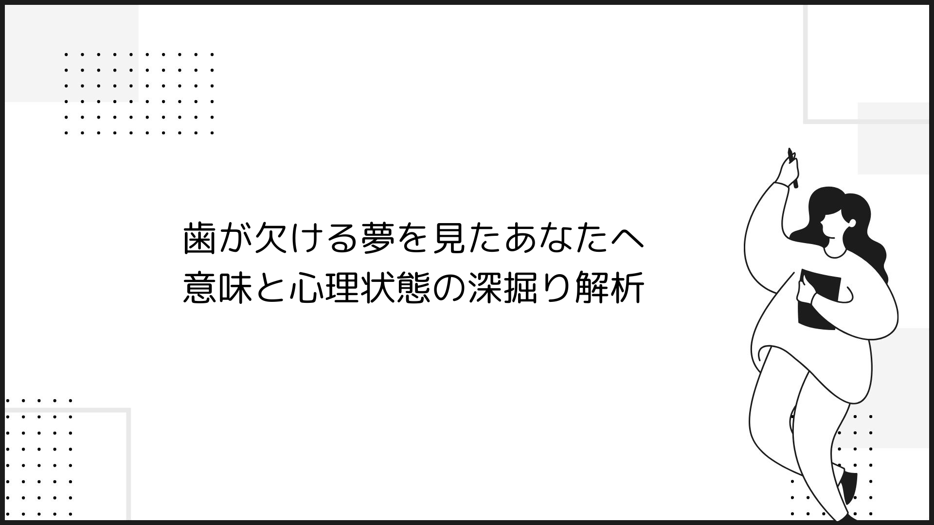 歯が欠ける夢は、初見では不安や恐怖を感じさせるかもしれませんが、実際には私たち自身の内面に潜む感情や心理状態に光を当て、自己理解を深めるための重要な手がかりを提供してくれます。この記事では、歯が欠ける夢から得られる学びと、それを日常生活や自己成長の機会にどのように活かすかについてまとめ、心の健康を保つための方法を提示します。
